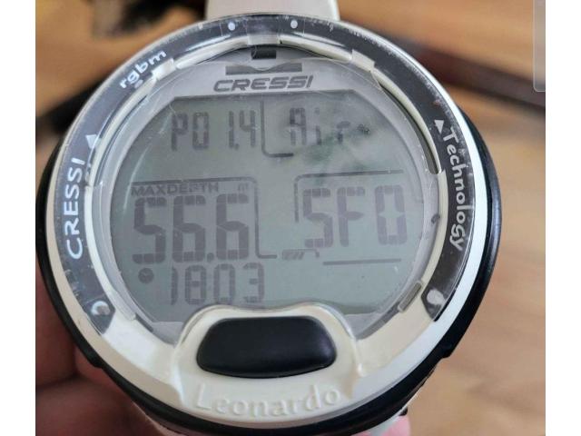 Cressi Leonardo dive computer in great shape, always used with a screen protector. Has about 15 dives in fresh water and same in salt.